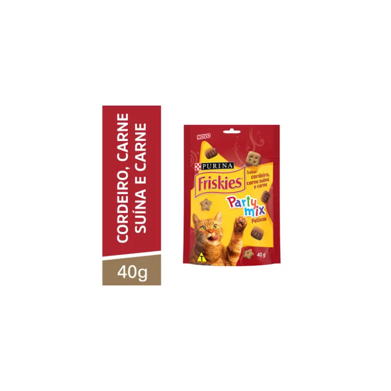 PETISCO FRISKIES PARTY MIX CORDEIRO, CARNE SUÍNA E CARNE PARA GATOS 40 G