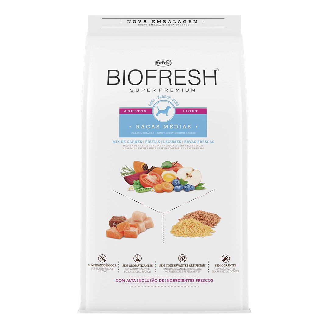 RAÇÃO BIOFRESH PARA CÃES ADULTOS LIGHT RAÇAS MÉDIAS