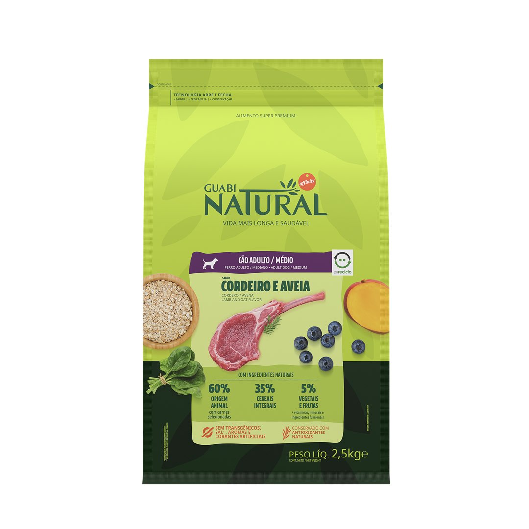 RAÇÃO GUABI NATURAL CÃO ADULTO MÉDIO CORDEIRO E AVEIA