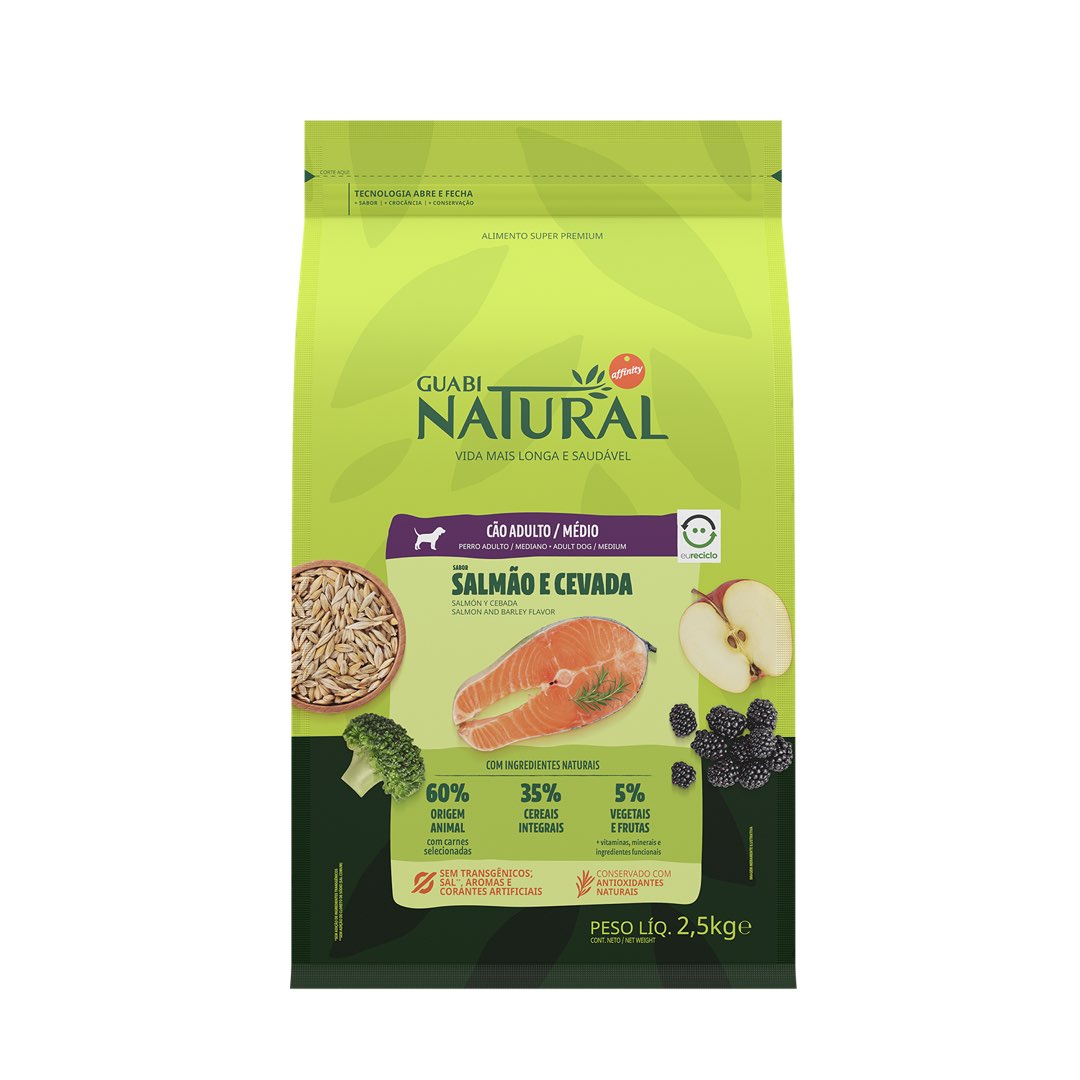 RAÇÃO GUABI NATURAL CÃO ADULTO MÉDIO SALMÃO E CEVADA