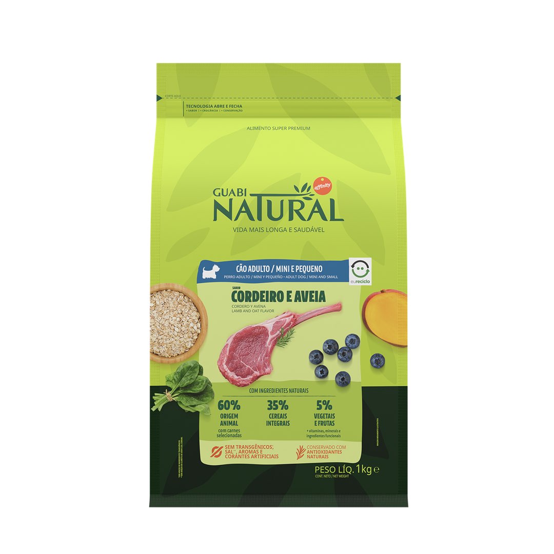 RAÇÃO GUABI NATURAL CÃO ADULTO MINI E PEQUENO CORDEIRO E AVEIA